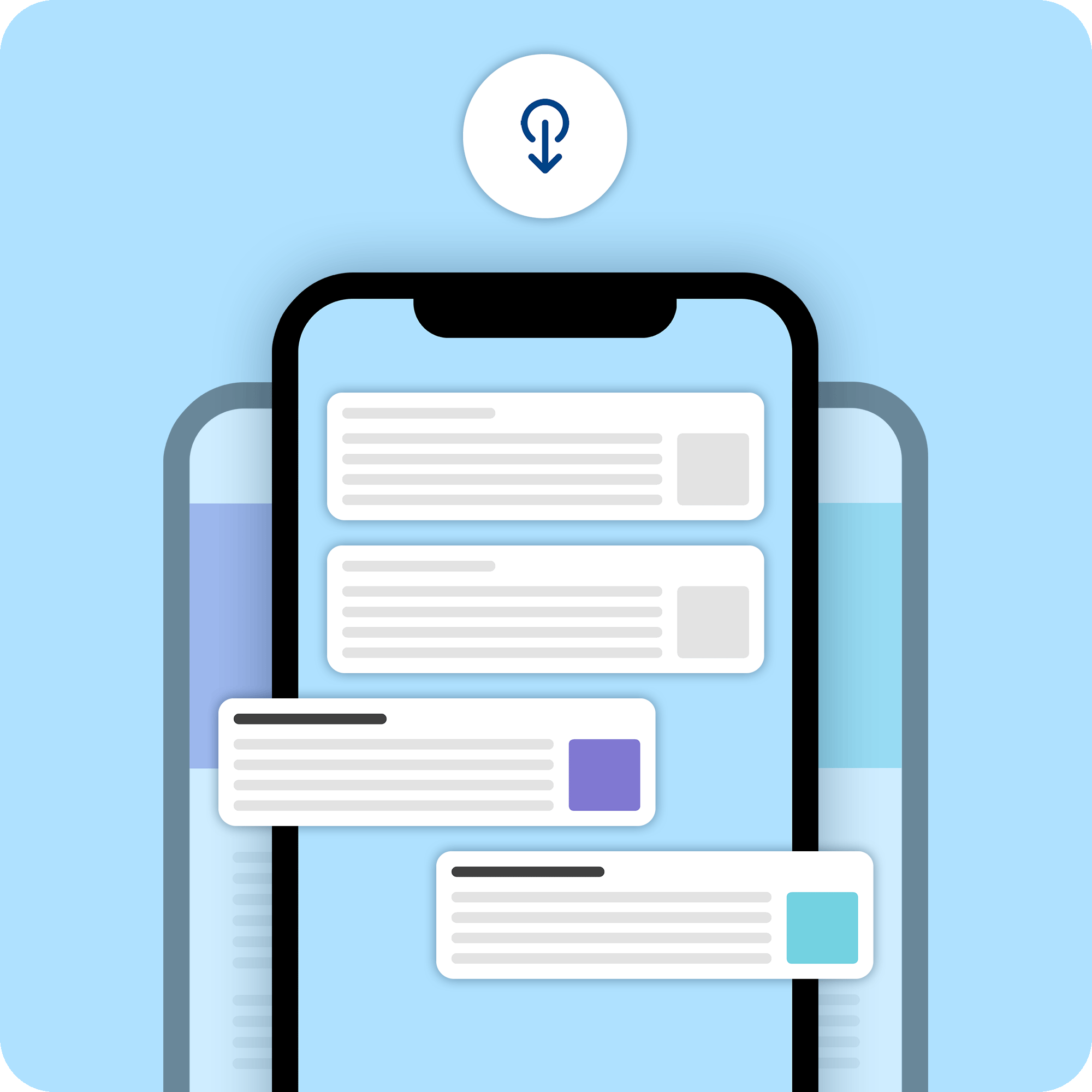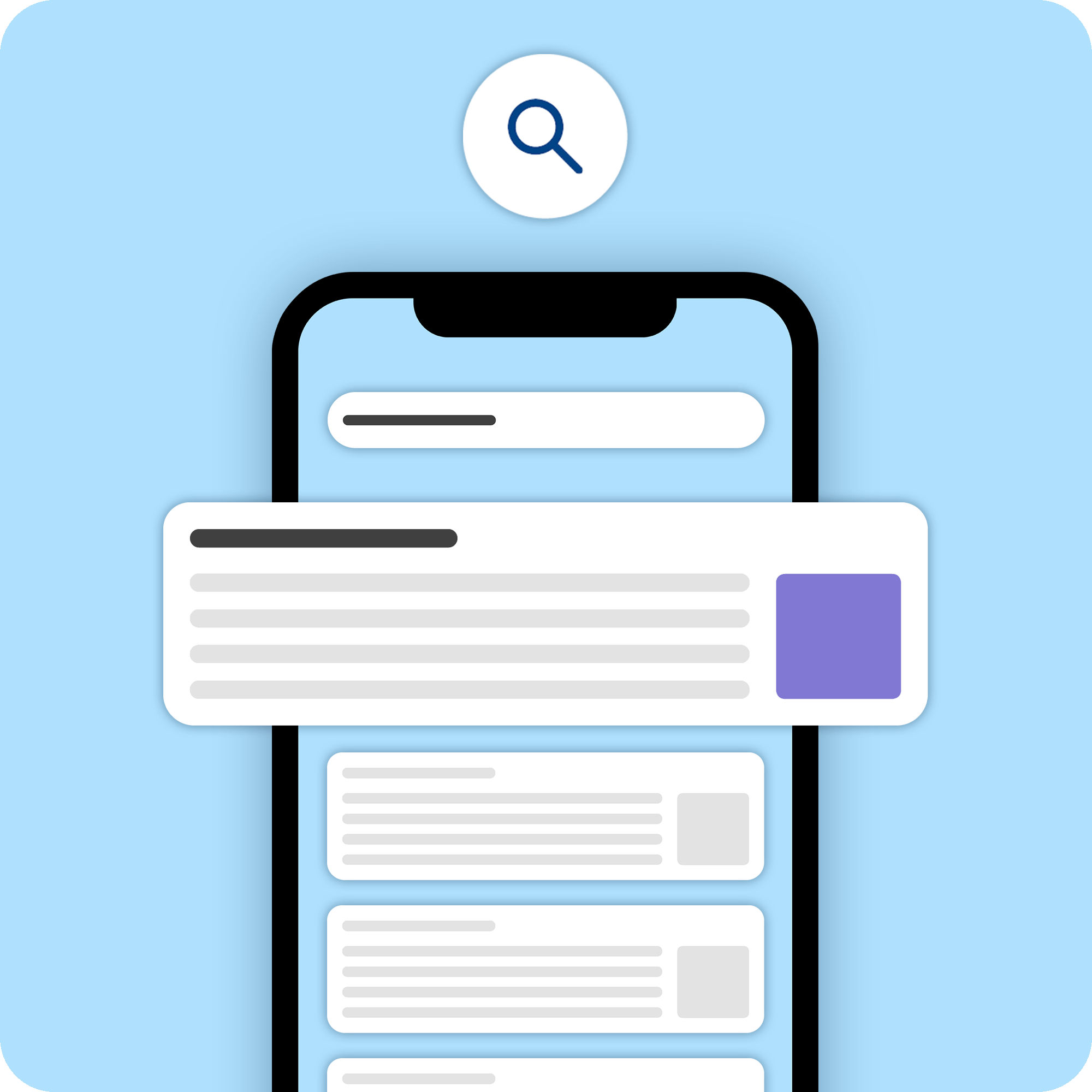 Information is presented in a card style with a carousel function. An overview section organizes a short representation of your cards in lists. Breadcrumbs uniquely identify similar topics.