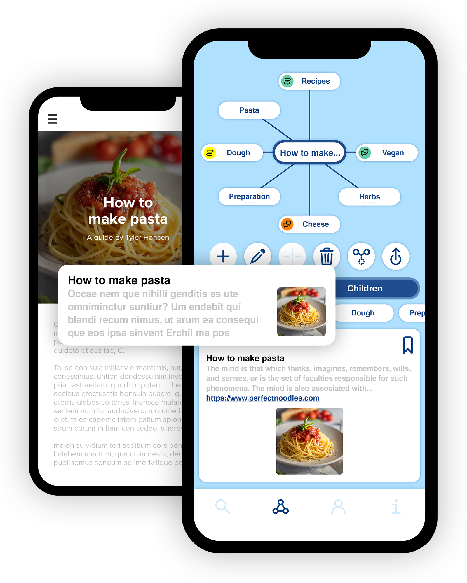 - Create Mind Maps and connect them in parent-child relations. This results in a hierarchical network where all your information is put into relation at a central place.