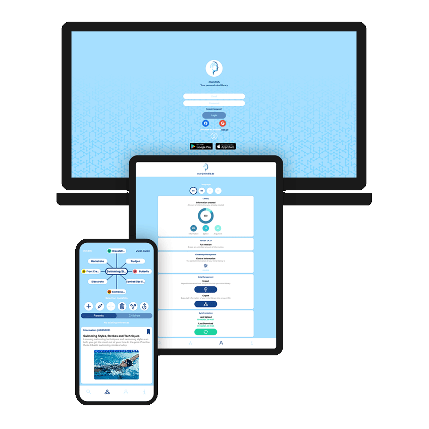 Information and ideas worth noting down can arise at any place and situation. Therefore it is crucial to have a tool that is working mobile. Also, you want to be able to dump your notes as quickly as possible so you don’t lose the context of your current activity, but still be able to organize it later. mindlib masters these requirements.